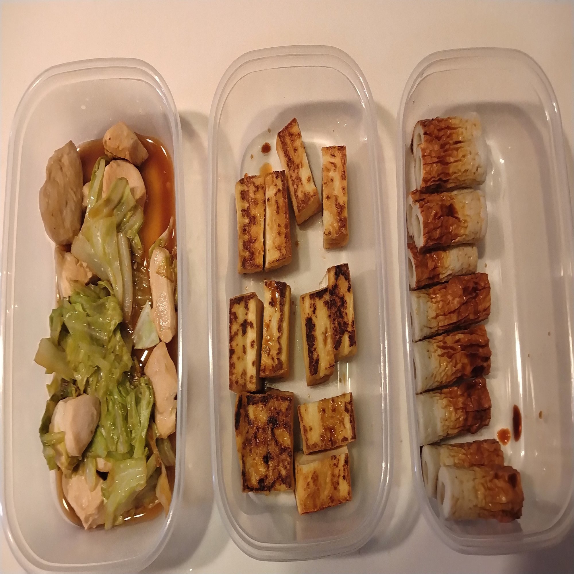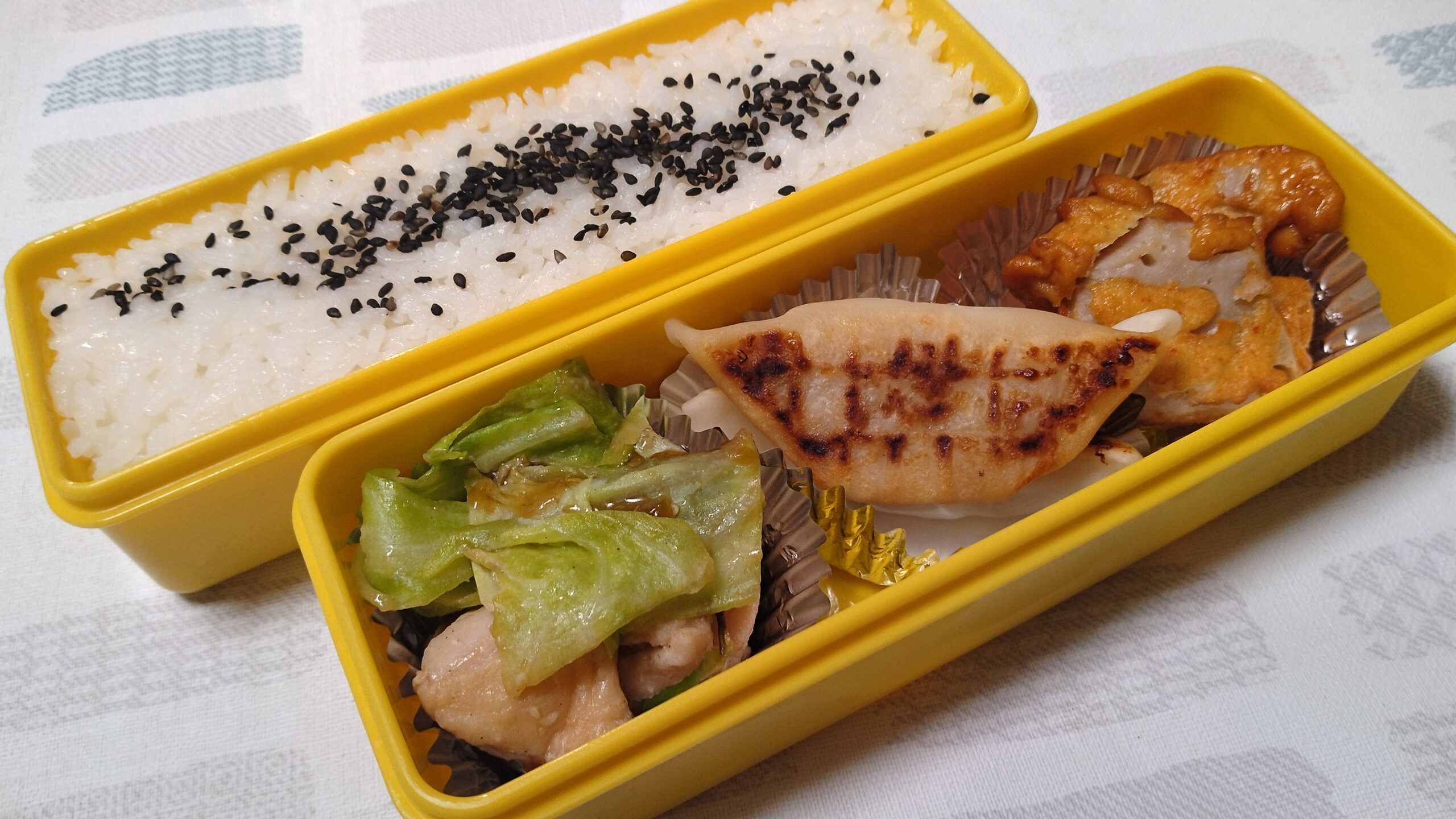 おかずは普通のスーパーの半額の総菜でも大丈夫ですし、焼くだけで食べられるシュウマイや餃子なんかもあります。